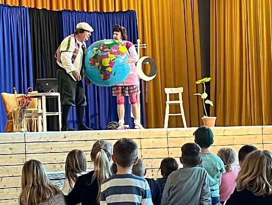 Am 25. Mai durften alle Kinder der Grundschule Mistelgau-Glashütten das Kinderstück "Augustine will tanzen" gespielt vom Fränkischen Theatersommer in der Mehrzweckhalle Glashütten genießen.