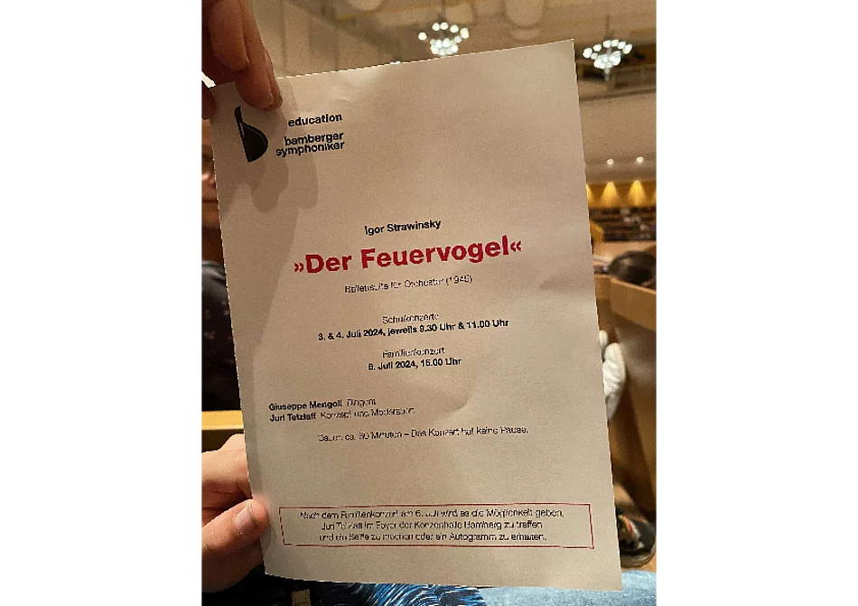 Auch in diesem Jahr durften unsere Dritt- und Viertklässler einen ganz besonderen Ausflug unternehmen. Mit dem Bus ging es nach Bamberg und nach einem kleinen Stadtbummel über die Obere Brücke, durch die Sandstraße und Klein-Venedig besuchten wir Strawinskys Feuervogel in der Konzert- und Kongresshalle Bamberg.