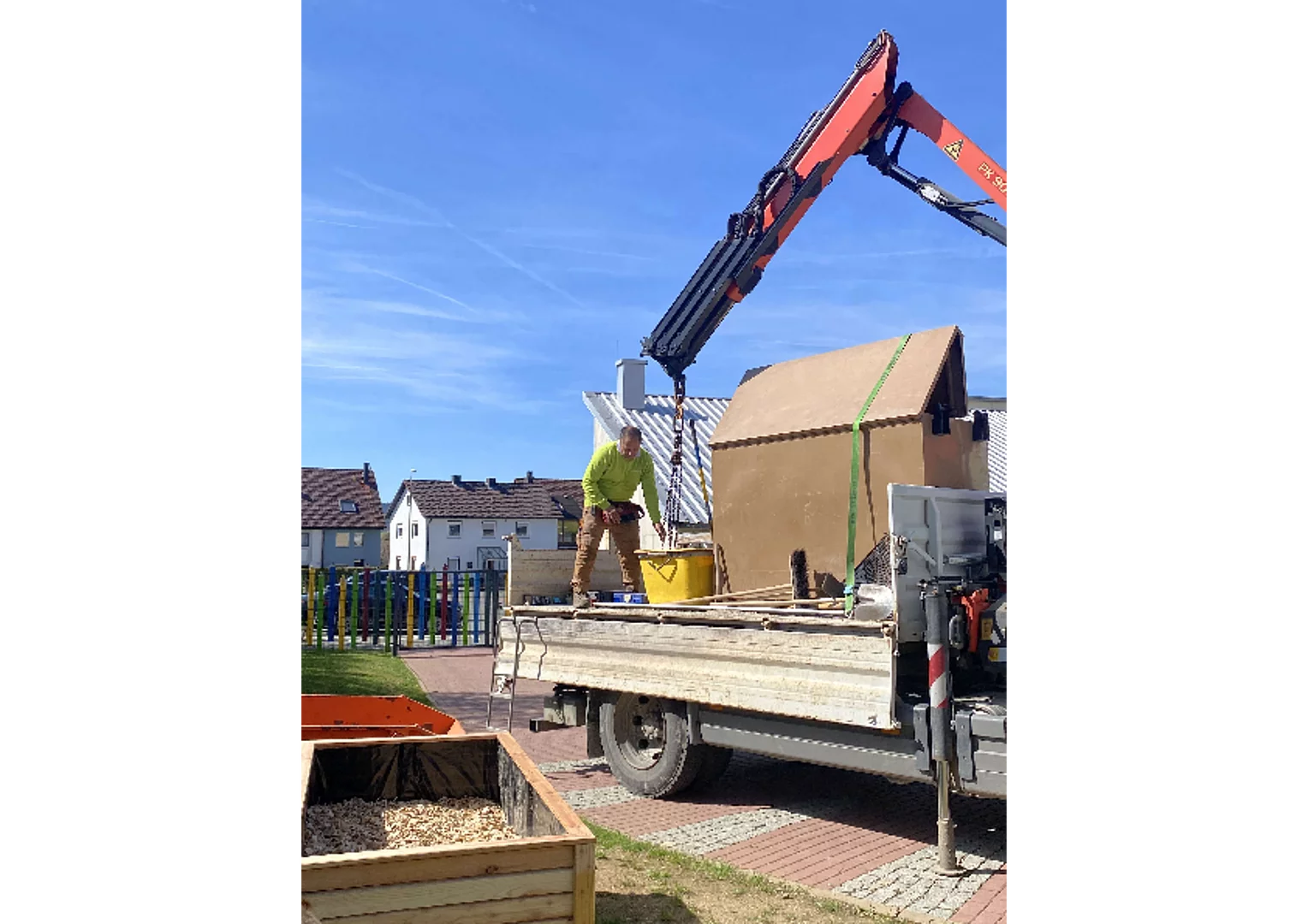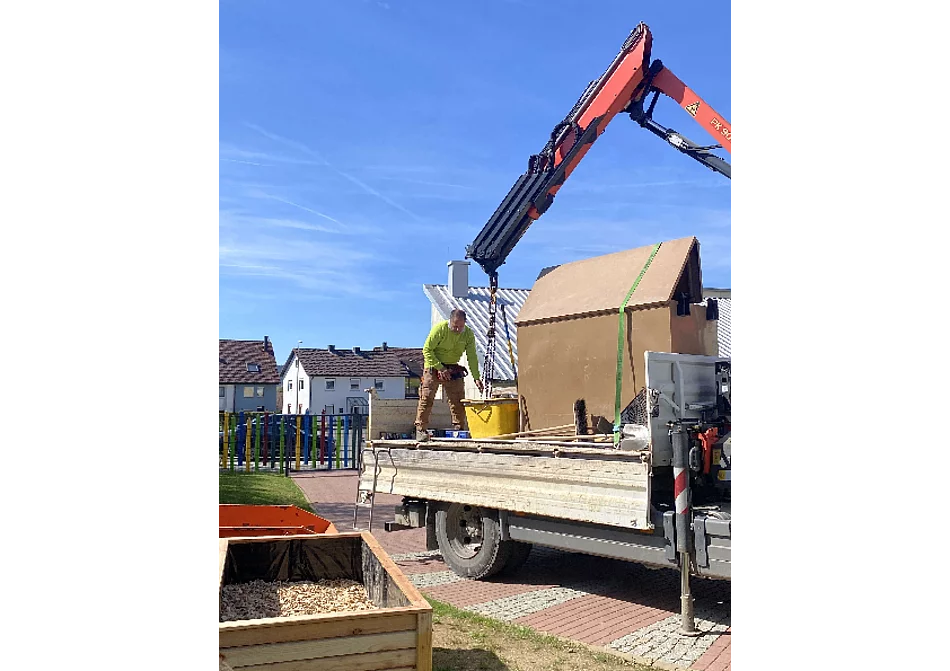 Am Freitag, 24.04.26 war die Aufregung im Schulhaus Mistelgau groß als die Firma Gartenschmiede das neue Hochbeet anlieferte.