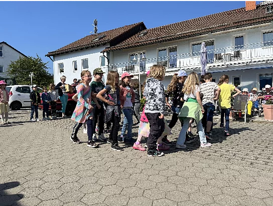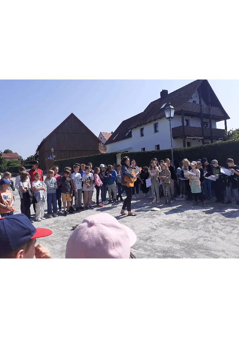 Die Glashüttner Grundschüler musizieren vor dem Altenheim in Glashütten, die Dritt- und Viertklässler singen am Hanasenplatz in Mistelgau!
