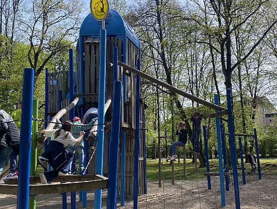 Bei herrlichem Frühlingswetter lauschten wir den Erklärungen von Frau Weinrich und spazierten dann auf den Spuren Wilhelmines bis zum Spielplatz im Hofgarten.