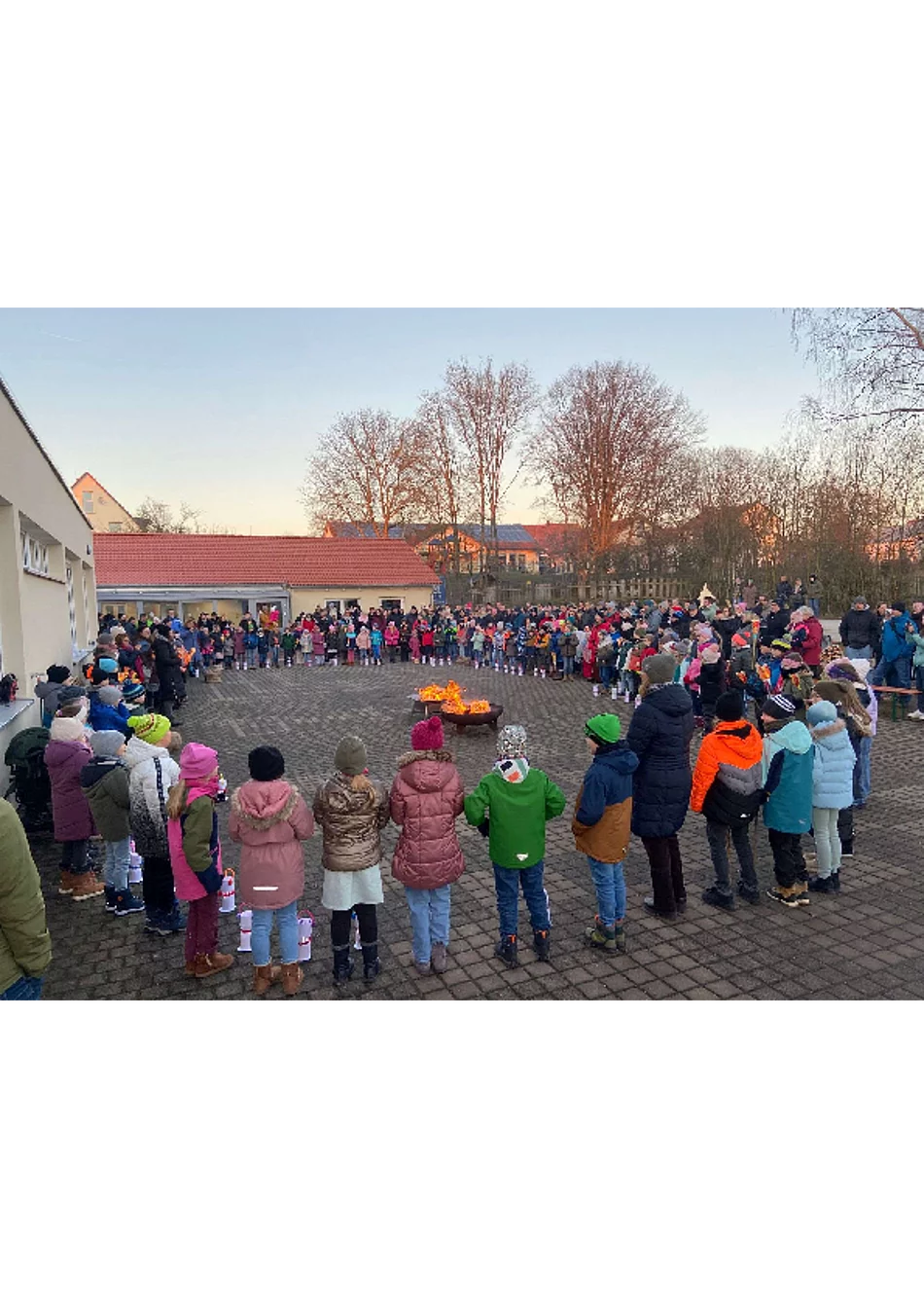 Dieser Wunsch hat sich bei unserem "Winterfeuer" auf dem Schulhof in Mistelgau bewahrheitet. Bei herrlichstem Wetter konnte bei beginnender Dämmerung erstmalig diese Aktion mit der gesamten Schulgemeinschaft gefeiert werden. Alle haben mitgeholfen, dass unsere Schülerinnen und Schüler einen großen Spaß hatten. Bei Liedern, Feuer in großen Feuerschalen, dem Wünschebaum der Klassen für 2025 und wunderschöner Dekoration gab es viele Gelegenheiten, sich gegenseitig kennenzulernen und nette Gespräche zu führen. Unser Elternbeirat bewirtete die über 400 Gäste in großartiger Weise mit Würstchen, Laugenstangen und Punsch! Danke, dass Sie alle wieder mit so viel Liebe und Mühe zum Gelingen beigetragen haben. Ein herzlicher Dank geht auch an unsere drei Hausmeister, die Lehrkräfte und Kinder und einfach an alle, die mitgeholfen und mitgefeiert haben. Vielen Dank, Herr Seyferth-Zapf, für die tollen Impressionen von oben!