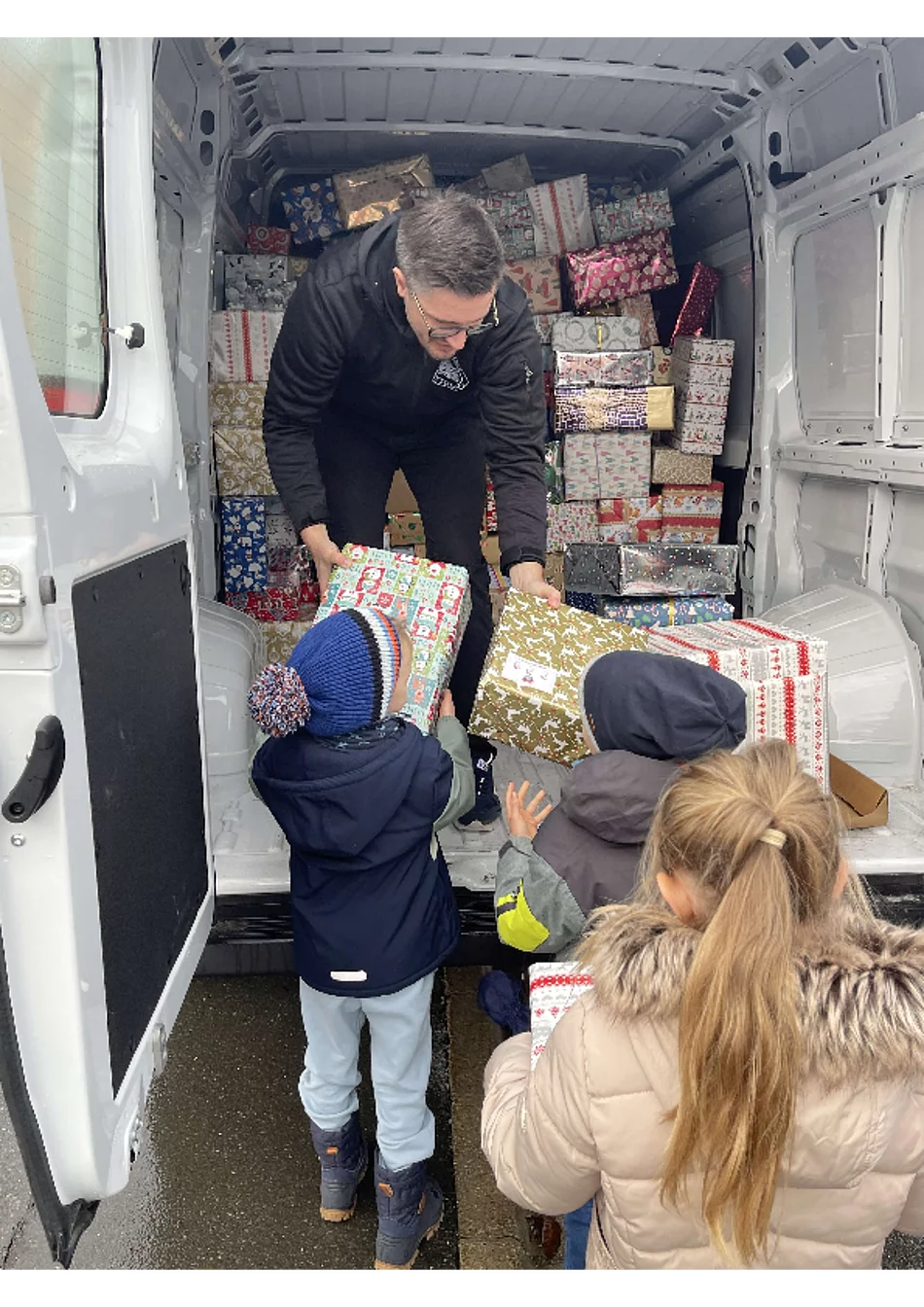 Die Abgabe der liebevoll verpackten Weihnachtspäckchen hat alle sichtbar glücklich gemacht.