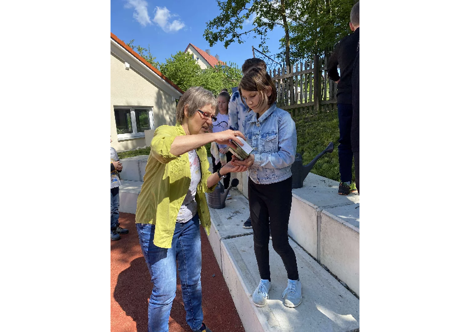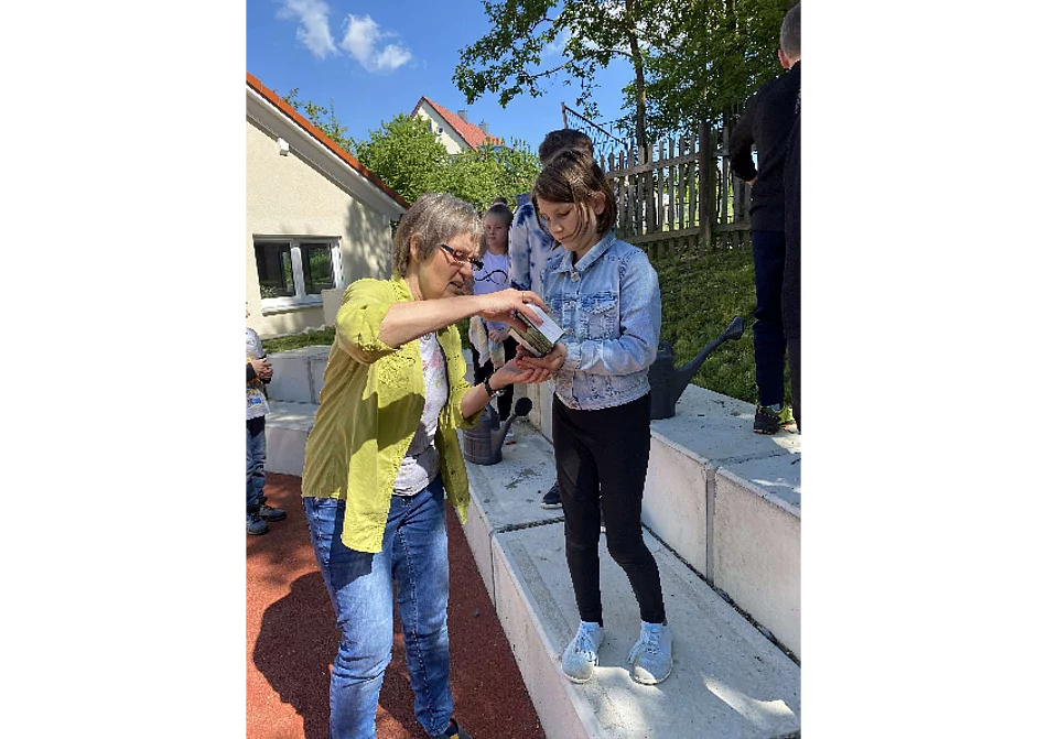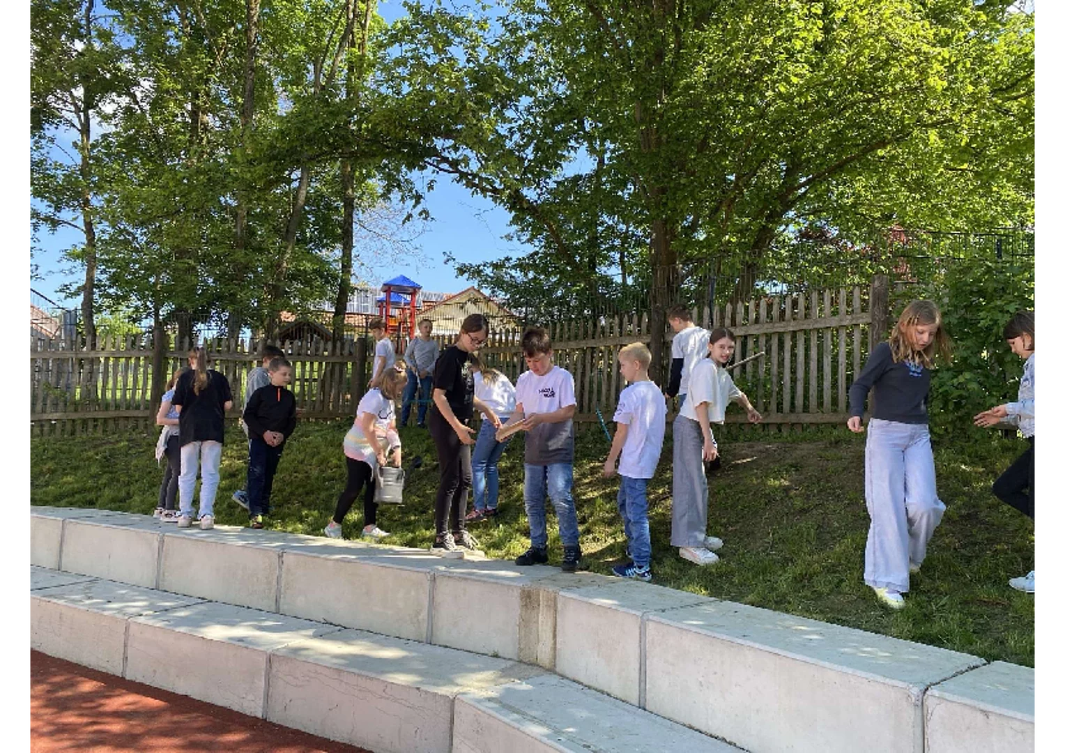 Um Insekten eine Freude zu machen, säten unsere Schülerinnen und Schüler einen Streifen Blühsamen am Rande des Pausenhofs. Jetzt muss täglich gegossen werden. Nun drücken alle die Daumen, dass möglichst viele Samen keimen und die Blütenpracht bald bewundert werden kann.